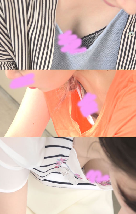 【前屈み胸チラvol.18 】合計3名!!オレンジ派手ギャル女子大生のエロ光り乳首丸見え状態に・・・